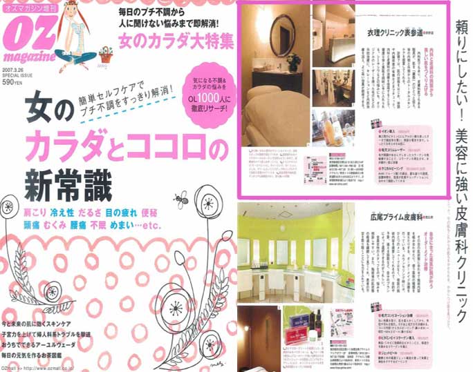 オズマガジン増刊「女のカラダとココロの新常識」2007年版に衣理クリニック表参道が掲載されました