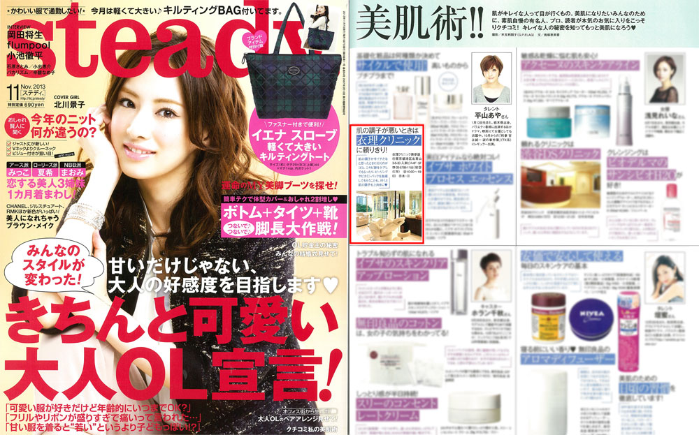 『InRed』11月号、「美肌女子の“潤いレシピ”が見たい!」にて、衣理クリニック表参道院長 片桐衣理が、秋の保湿ケアについてコメントさせて頂きました。また、自身のケア法についてご紹介させて頂いております。是非、ご覧下さいませ。