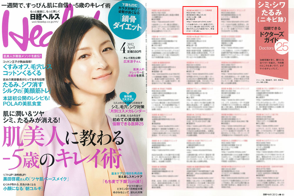『日経ヘルス』4月号に衣理クリニック表参道が掲載されました