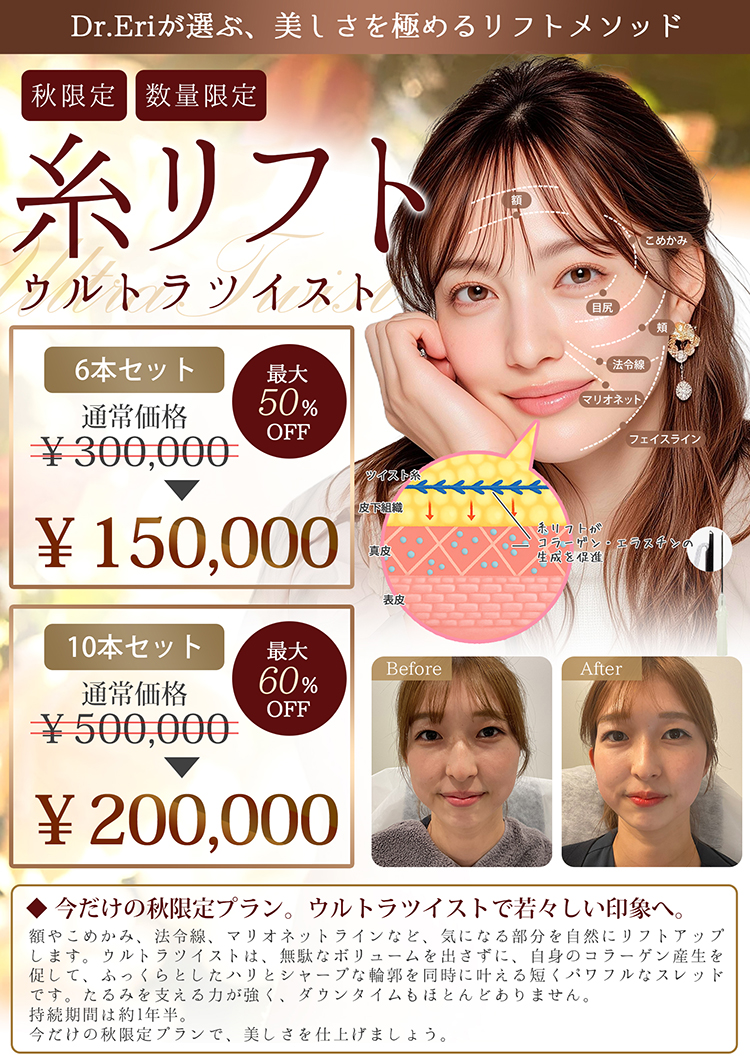 この秋限定で、人気の「ウルトラツイスト糸リフト」が特別価格にてご案内中です。